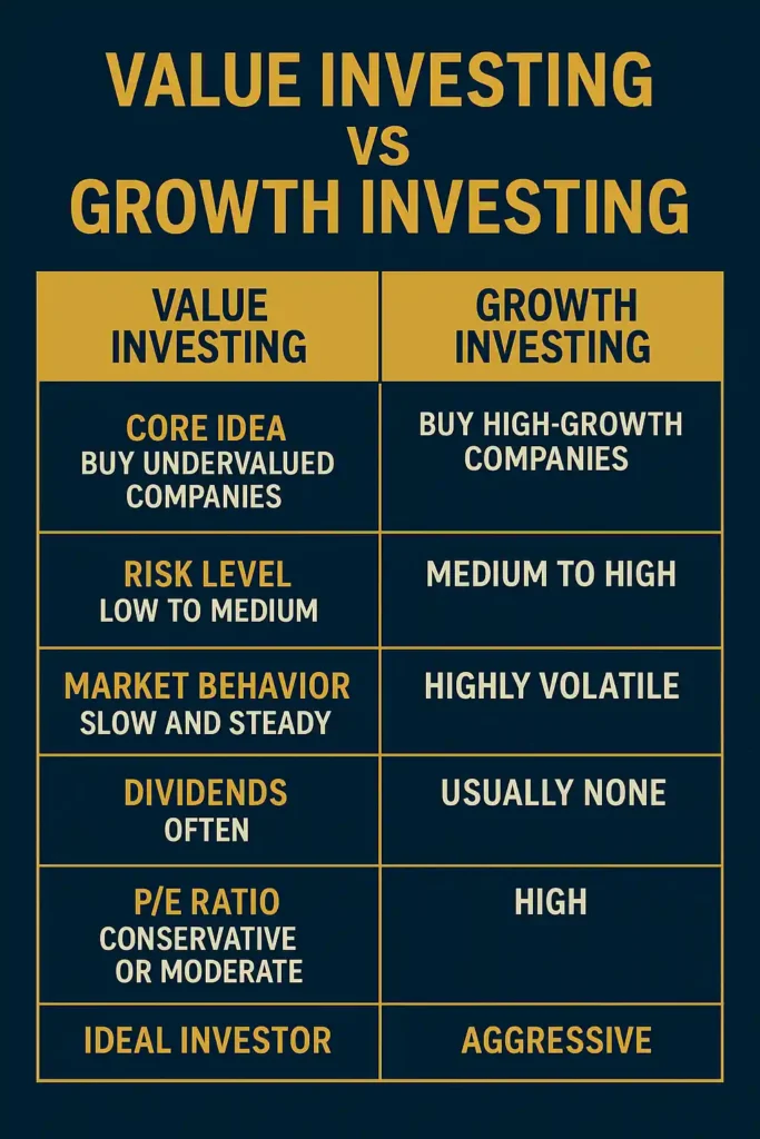 Stock market investors often get confused between two of the most widely used investment styles: value investing and growth investing. Both are proven wealth-building methods, but they work in different ways, attract different types of investors, and perform differently in varying economic cycles.
